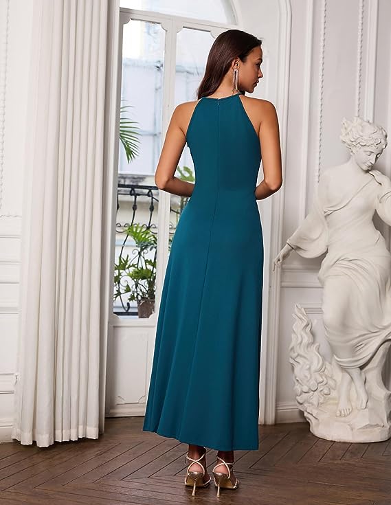 The fabric has a moderate thickness and a drooping feel, without leaving a dry impression, making it suitable for cocktail wear.