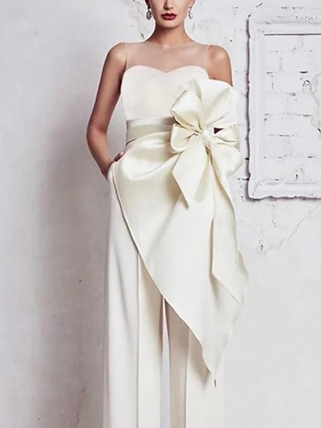 > Full dress > Women's Jumpsuit Flower Floral Bandeau Casual Street Daily Wear Regular Fit Sleeveless White