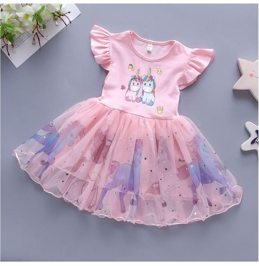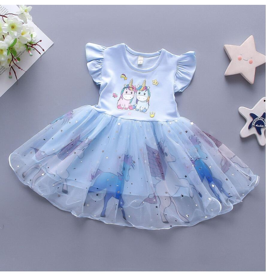 > Baby Clothes > Baby Girls Unicorn Dress Children Clothes Baby Birthday Dress Summer Kids Girl Casual Princess Dresses