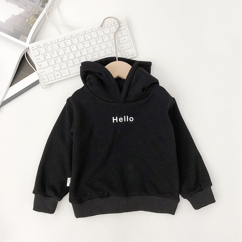 > Baby Clothes > Kids Boy Clothes Hooded Letter Hello Solid Plain Hoodie Children Pullover Tops Autumn Early Winter Hoodies Coat