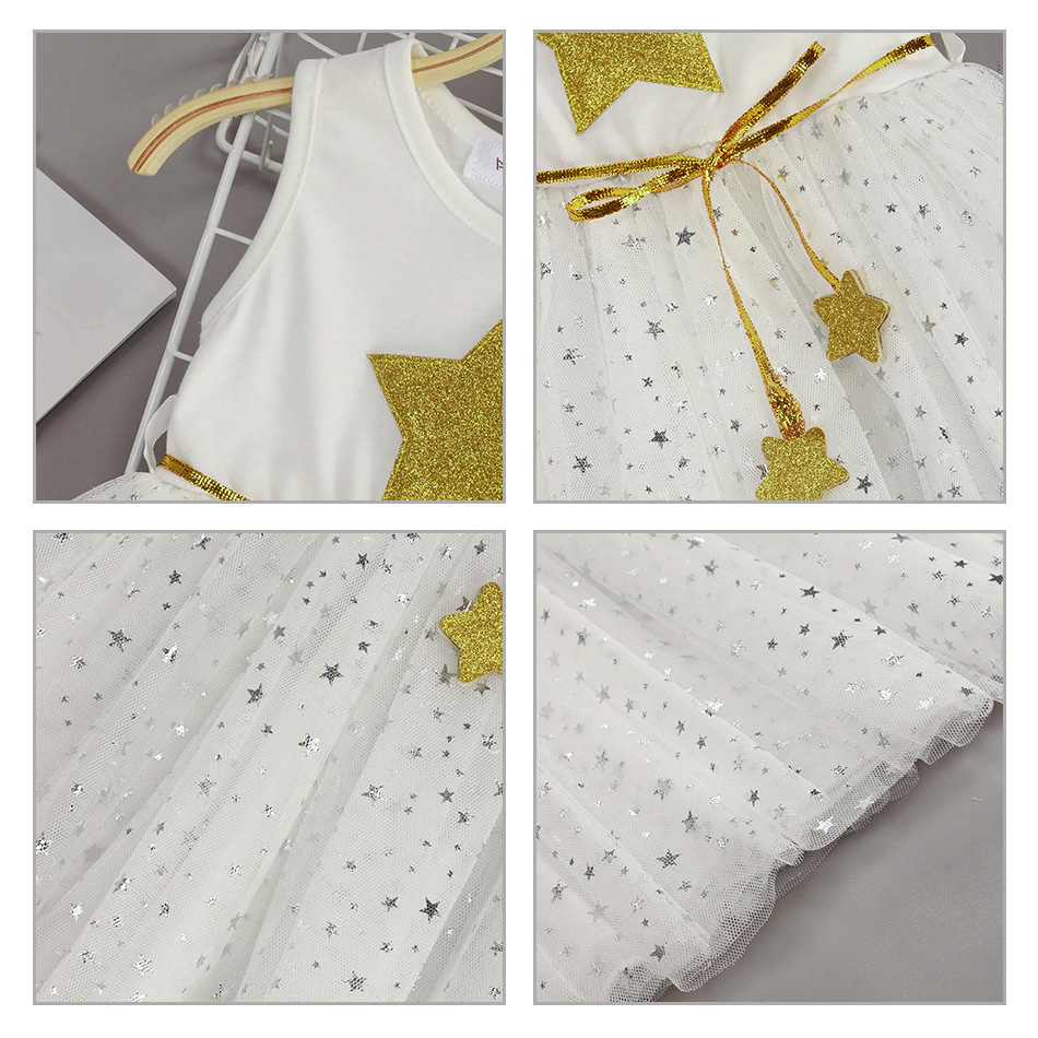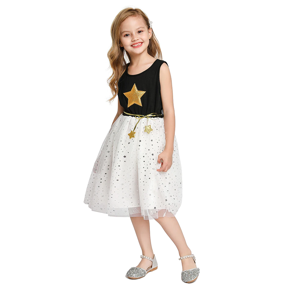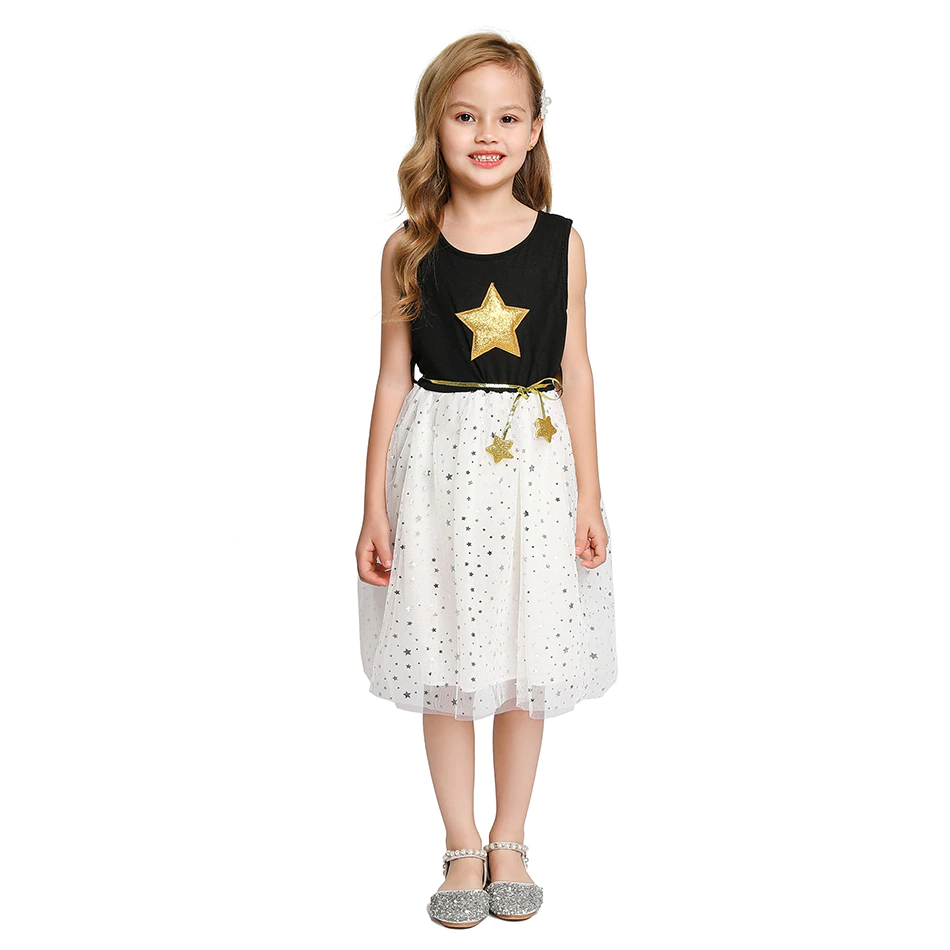> Baby Clothes > Girls Dress New Summer Sleeveless Star Sequins New Children Dress Sweet Party Mesh Princess Dress Kids Dress