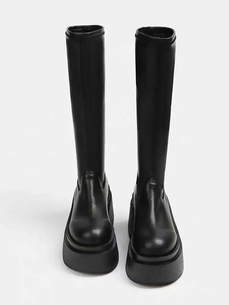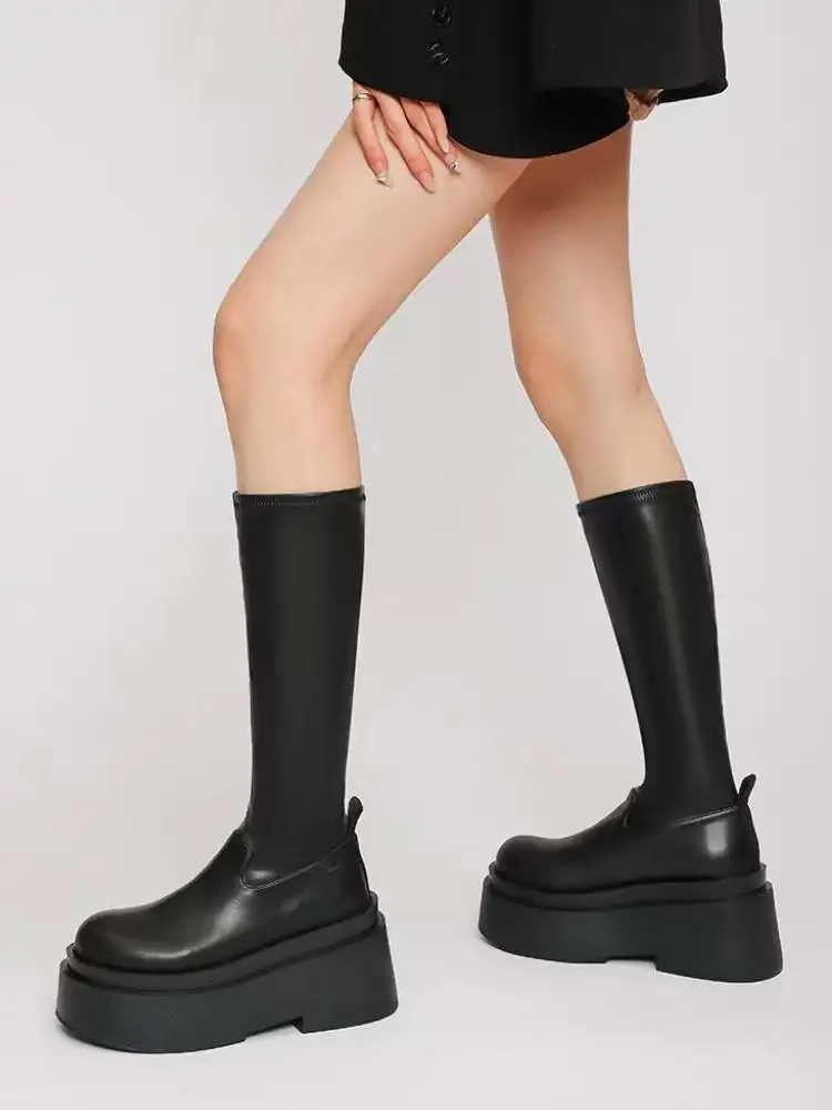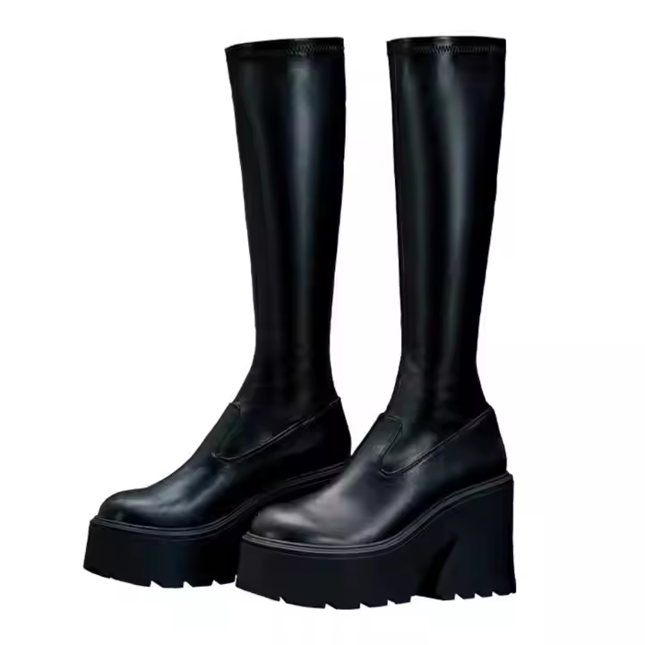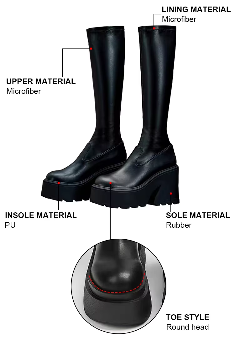 Keywords :Waterproof platform heightened elastic knee-high boots